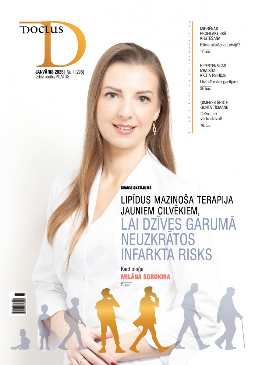 Doctus janvāra numurā ir vairāki raksti, kas skar sirds un asinsvadu veselību — varat lasīt gan par lipīdus samazinošu terapiju jauniem pieaugušajiem, gan psihozes izraisītu hipertensiju, gan par Alcheimera demenci — 40 % no visām demencēm saistāmas ar modificējamiem riska faktoriem: hipertensiju, augstu holesterīna līmeni, cukura diabētu, neveselīgu uzturu, smēķēšanu. Hipertensijas noteikšanā visgrūtākais ir diagnozi pierādīt. Tā ir viltīga diagnoze, mūsu slepenais ienaidnieks, kas var būt klātesošs, bet nejūtams. Zinām, ka hipertensija rada sirds, nieru un asinsvadu bojājumus, bet cik bieži aizdomājamies, ka šī diagnoze var slēpties citas slimības ēnā (piemēram, psihozes)? Paldies Strenču psihoneiroloģiskās slimnīcas kolēģiem par interesanto, vērtīgo klīnisko gadījumu apskatu.